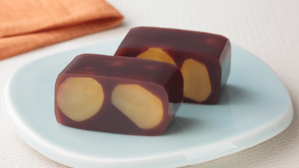 秋限定で販売される「栗蒸し羊羹」は、収穫したての国産生栗のみを使用し、ほくほくとした食感と豊かな風味が特徴です。