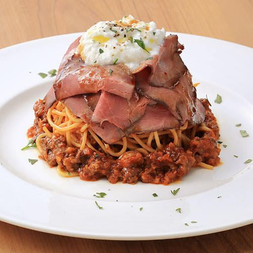 人気NO1の「仙台牛ローストビーフととろとろチーズの追い肉ボロネーゼ」は、まさにこの店でしか味わえない看板メニュー。