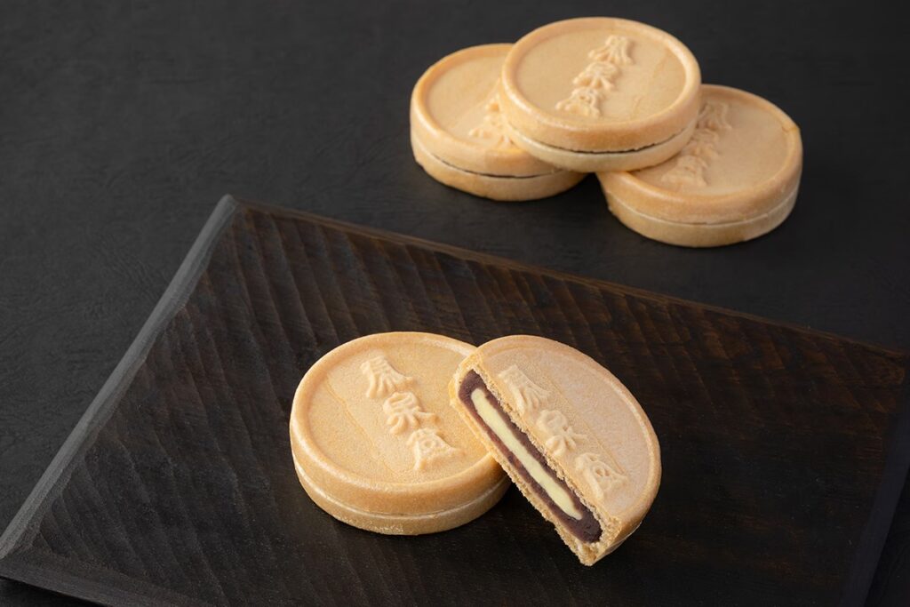 看板商品の「白松がモナカ」は、きめ細やかで香ばしい皮の中に、北海道産の十勝小豆や大納言、白いんげんなどを使用した瑞々しい餡が隙間なく詰まっています。